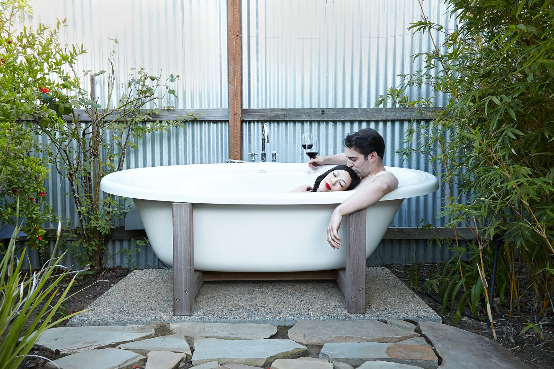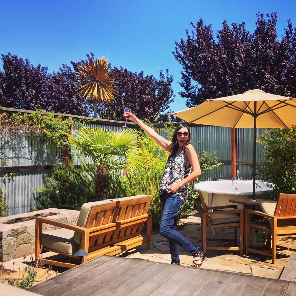 When splurging on a luxury vacation, I think it's important to figure out what elements are *really* of utmost importance to you. As much as we love stunning views and incredible interior design, what's really worth the splurge for us is - fire and hot tubs. We picked the "harvest cottage," which was short on vineyard views but featured an outdoor bath tub surrounded by flowers, and a toasty firepit for keeping warm and roasting marshmallows in the evening !